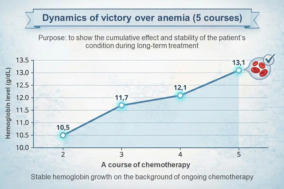 This case is not just a story of one person's recovery, but an important evidence of the effectiveness of an integrative approach in oncology. Statistics show that anemia caused by chemotherapy affects from 30% to 90% of patients. This is a global problem that reduces the chances of successful treatment.